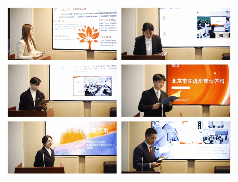 答辩会上,各位候选人及候选班级代表分别从思想政治、学业科研、志愿服务、文体活动、学生工作、评优获奖等多个方面进行展示,五位评委老师根据展示答辩情况进行打分,最终确定四名北京市三好学生、两名北京市优秀学生干部和一个北京市先进班集体的推荐名单。