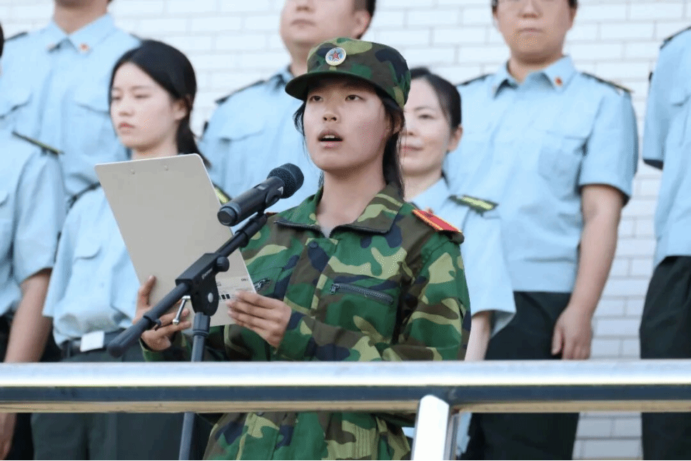 外语学院英语专业徐张鑫同学代表全体参训学员发言。她分享了在坚持中成长的收获,感谢教官与老师的付出,并表示将以崭新的风貌迎接大学生活,以奋斗书写青春篇章。