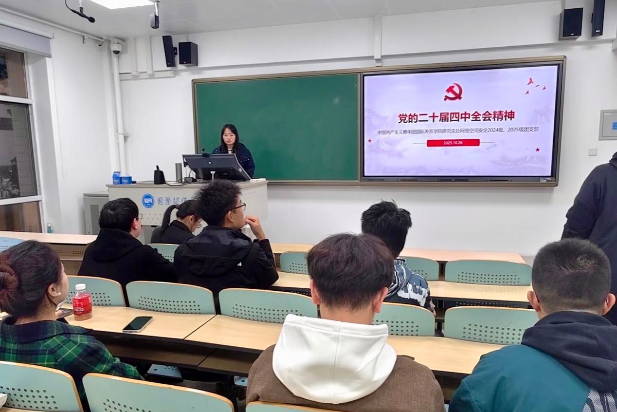 为全面深入学习贯彻党的二十届四中全会精神,引领全校团员青年不断提高政治素质,激发使命担当,砥砺只争朝夕、永不懈怠的奋斗精神,凝聚勠力同心、勇往直前的磅礴力量,奋力谱写中国式现代化更加绚丽的新篇章,不断推进强国建设、民族复兴伟业,国际关系学院团委组织各基层团组织开展“深学四中全会精神 勇担强国青春使命”主题团日活动。