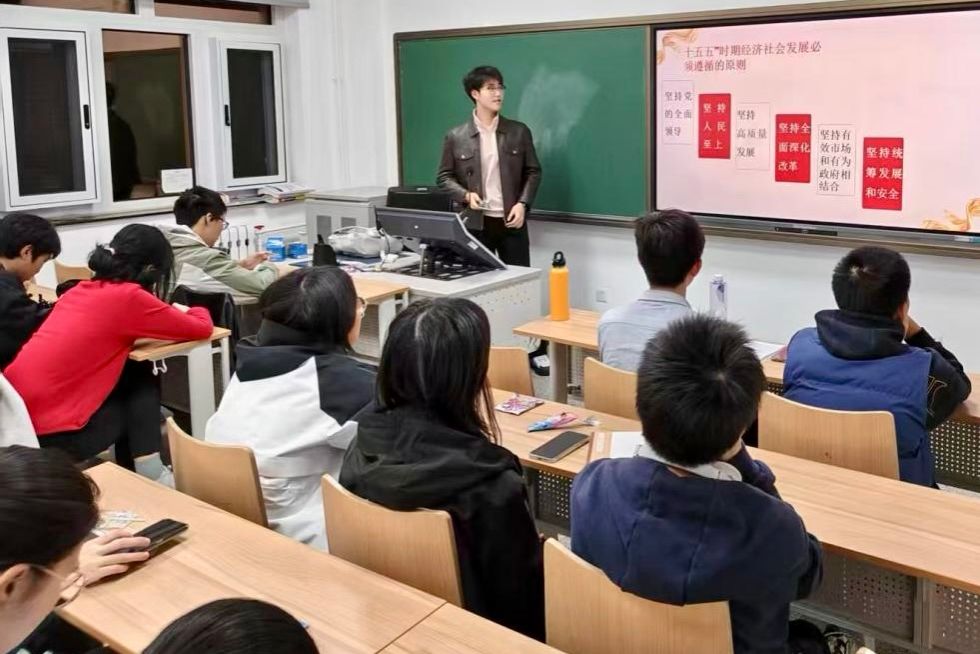 研究生处团支部创新活动形式,将党的二十届四中全会精神融入情景问答环节,团员们积极参与,通过“学、思、行”结合深化理论认知。活动中,同学们立足各自专业背景,围绕“加快高水平科技自立自强”“推进国家安全体系和能力现代化”等议题进行专题发言与自由交流,坚定了在科研创新、社会实践、志愿服务中践行全会精神的信念。
