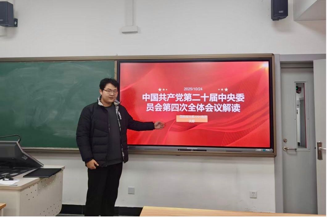 国际政治系各团支部通过理论讲解、视频学习等多种方式,结合思维导图等特色形式,深入学习党的二十届四中全会精神。活动聚焦全会核心内容和“十五五”规划要点,各团支部书记立足专业背景,解读了“高质量发展”等关键议题。同学们积极参与,深刻认识到个人成长与国家发展的紧密联系,增强了历史使命感,坚定了以专业能力践行全会精神、为强国建设和民族复兴贡献青春力量的决心。