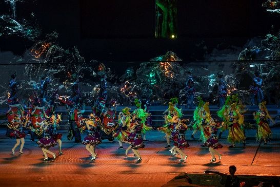 在结束志愿服务工作后,实践队成员观赏了腾龙洞内的土家族特色演出《夷水丽川》。整场演出分为序篇、上篇、中篇、下片和尾声五个部分,演出版本不断迭代,迄今已经演出了14000余场。随后,团队观看《夷水丽川》。全剧分五部分,迄今演出超14000场。从《天地之间》的宏大开篇,到《白虎雄风》的祖先传说,再到《巴裔风情》的民俗展示、《龙船新韵》的经典民歌重现,以及《家园丽川》的温情收尾,演出深刻展现了土家族的文化底蕴与艺术魅力。小队队员们在表演期间进行了拍摄和视频制作,助力文化传播。