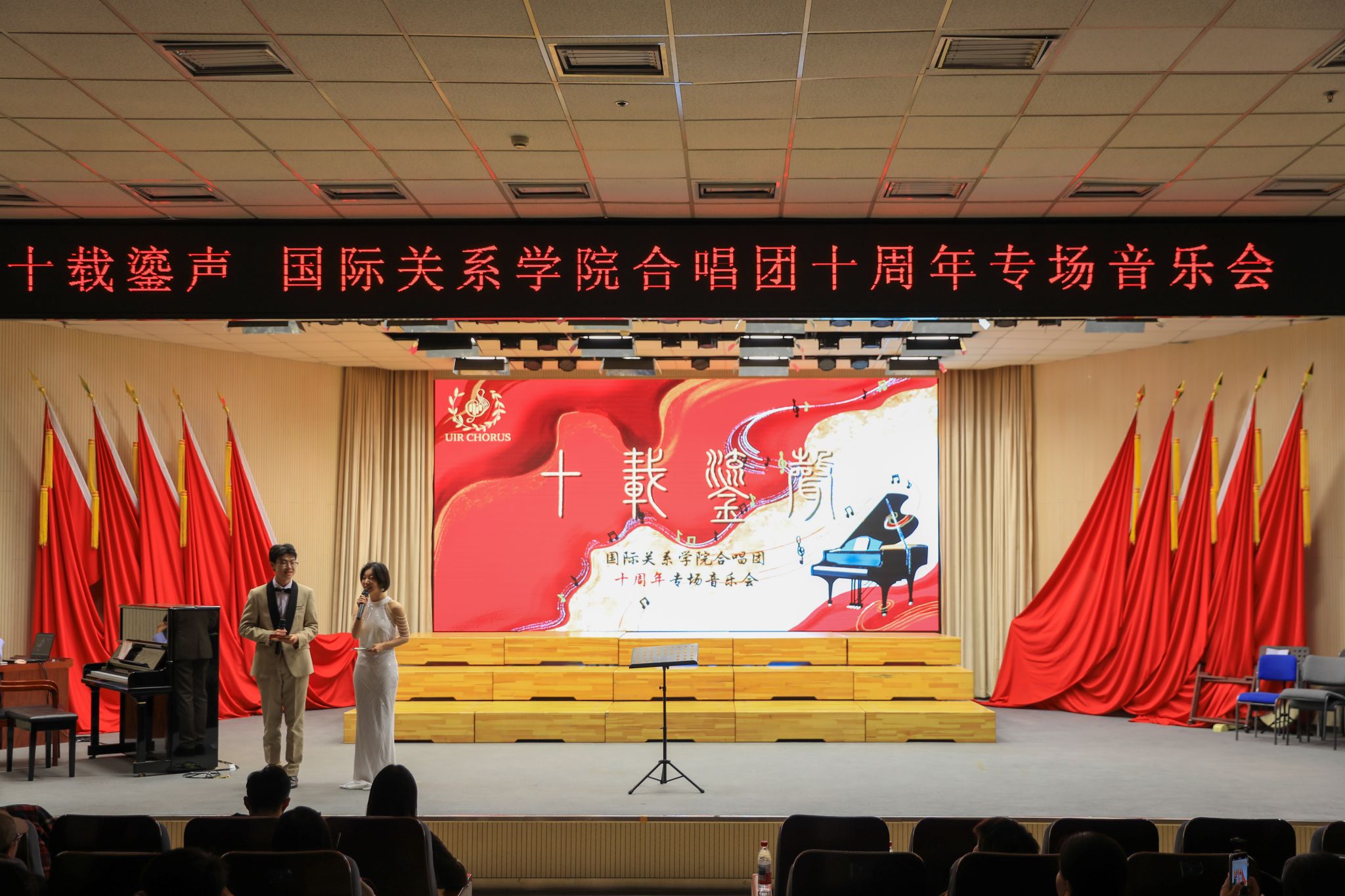 “十载鎏声”国际关系学院合唱团十周年专场音乐会 “十载鎏声”国际关系学院合唱团十周年专场音乐会 当十年的歌声织成天边的流云,当鎏金的旋律落满十载的时光——“十载鎏声”,十年流转,热爱如初,国际关系学院合唱团的第十年,终于要以一场专场音乐会,把所有歌声里的故事,唱成那个晚上独一无二的回响。当我们手握那张精致的音乐会门票,不管是曾在合唱团挥洒青春的老团员,是心怀热爱的新团员,还是欣然赴约的聆听者——这一次,将一同搭乘奇妙的时光机,共同见证过去,现在与未来的故事。... 2025.11.24