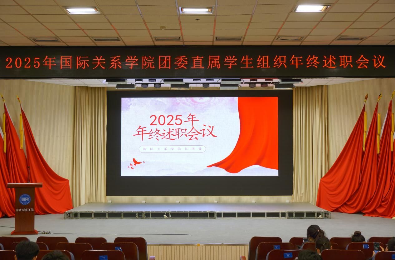 2025年国际关系学院团委直属学生组织年终述职会议顺利召开 2025年国际关系学院团委直属学生组织年终述职会议顺利召开 为系统总结2025年度我院团委直属学生组织工作,进一步凝聚团学力量,推动团学工作提质增效,12月3日下午,国际关系学院团委直属学生组织年终述职会议于学术交流中心第一放映厅召开。团委书记孙华砚、团委干部段雅婕及各直属学生组织负责人出席会议。会议由团委办公室主任许斯琪主持。会上,各团学组织负责人依次作述职汇报,系统回顾了本年度各项工作。汇报内容涵盖思想引领、... 2025.12.04